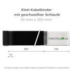 Klett Kabelbinder geschweißter Schlaufe in verschiedenen Größen und Farben. Zum festen Anbringen am Kabel (üblich in der Veranstaltungstechnik). Haken und Flausch auf entgegengesetzter Seite. Übers Kabel ziehen, Strecker dran, fertig.